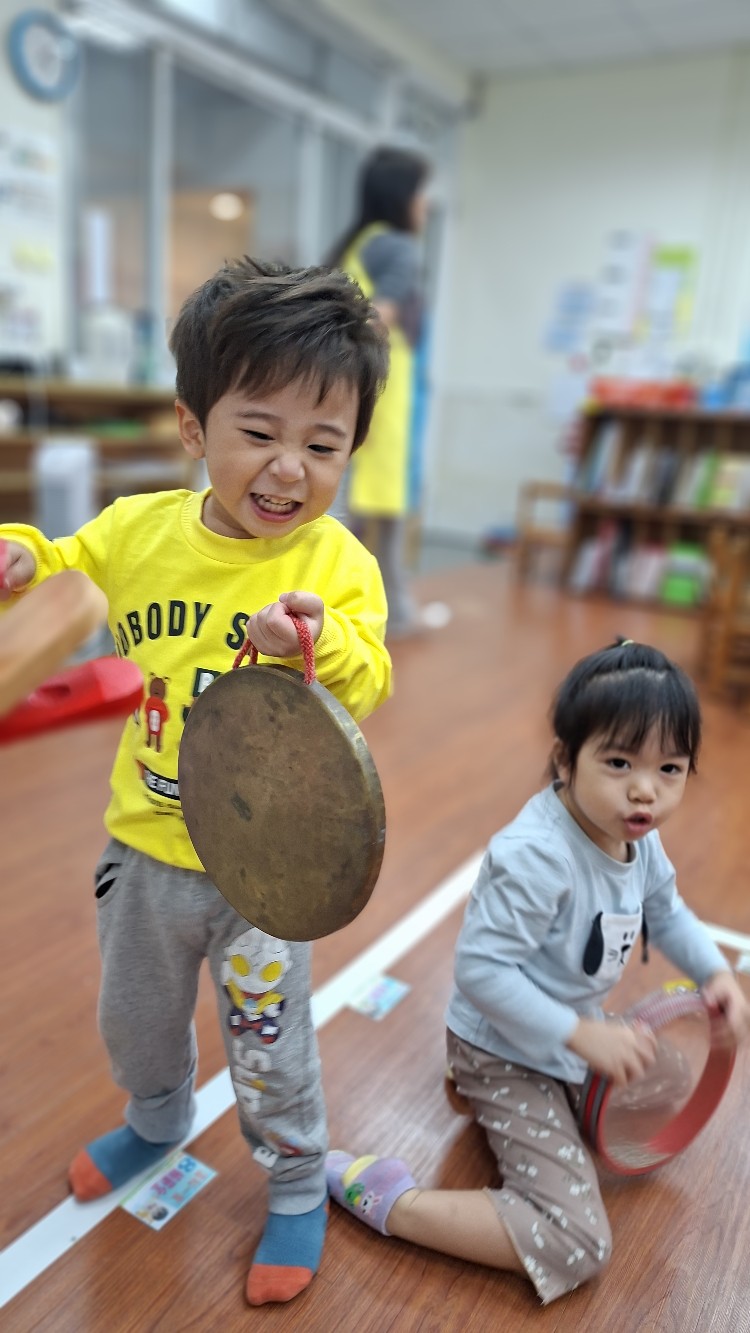 自己選喜歡的樂器和同學一起跟著音樂合奏。