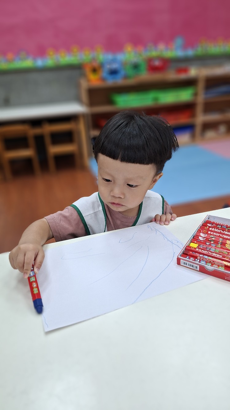 讓寶貝配合音樂節奏快慢和高低音色畫出線條。帶線線去旅行。